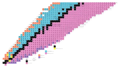 For reference, here is a plot of the experimentally determined atomic nuclei stability and decay